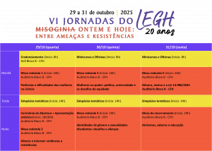 Confira a programação resumida da VI Jornadas do LEGH!